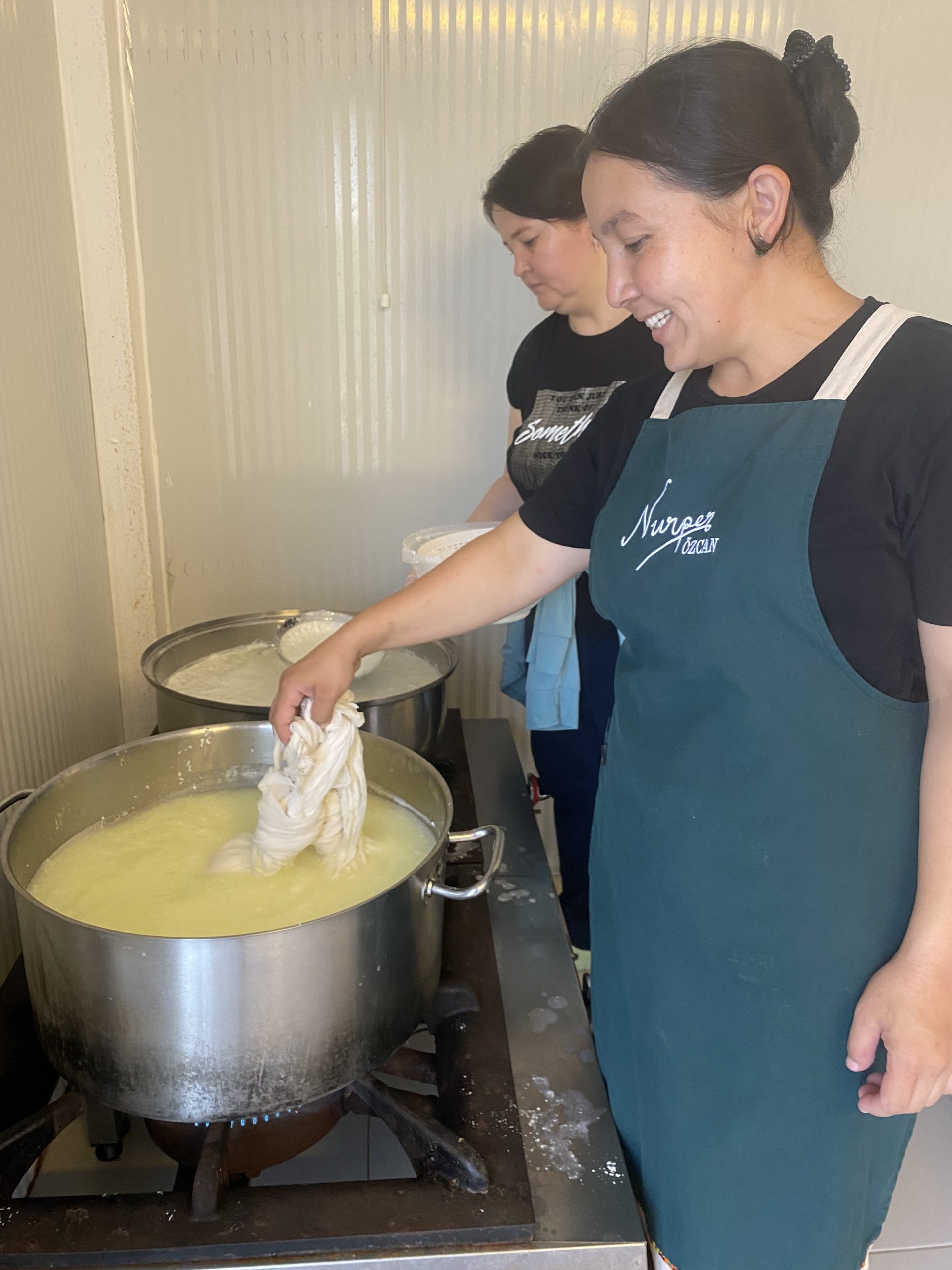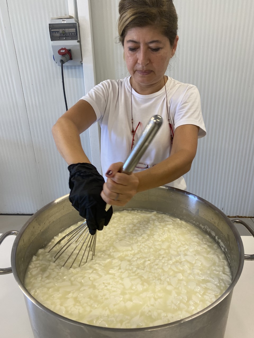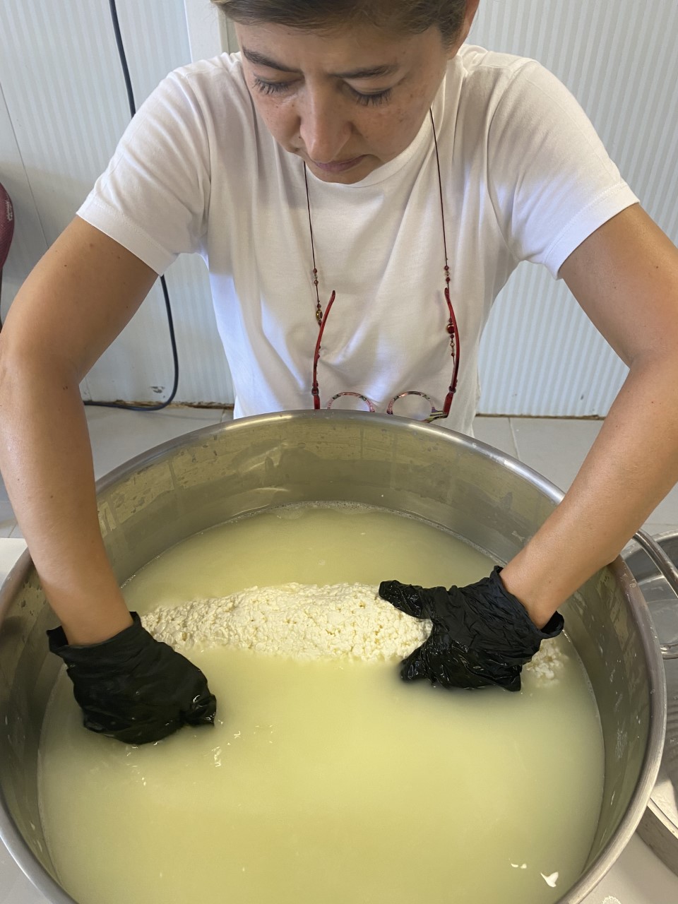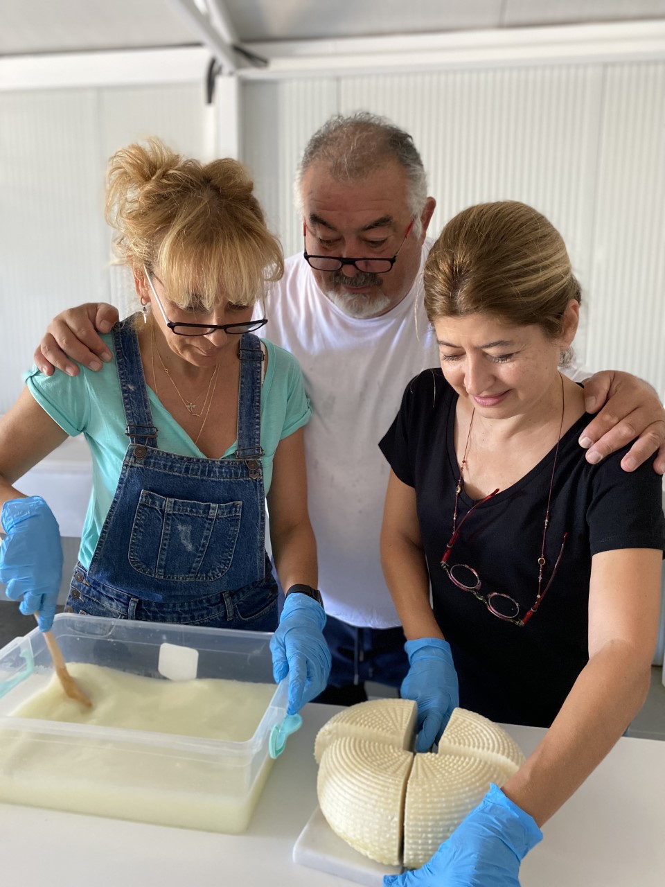 Donanımla kurmuş oldukları mandıralarında; sürk, ricotta, labne, gorcola, sepet, çerkes, isli çerkes, pecorino, ricotta, gorgonzola ,Havran kelle ve çeşnili hellim peyniri ürettik. Proseslerindeki peynirleri inceledik, eksiklerini giderdik, yorumladık.