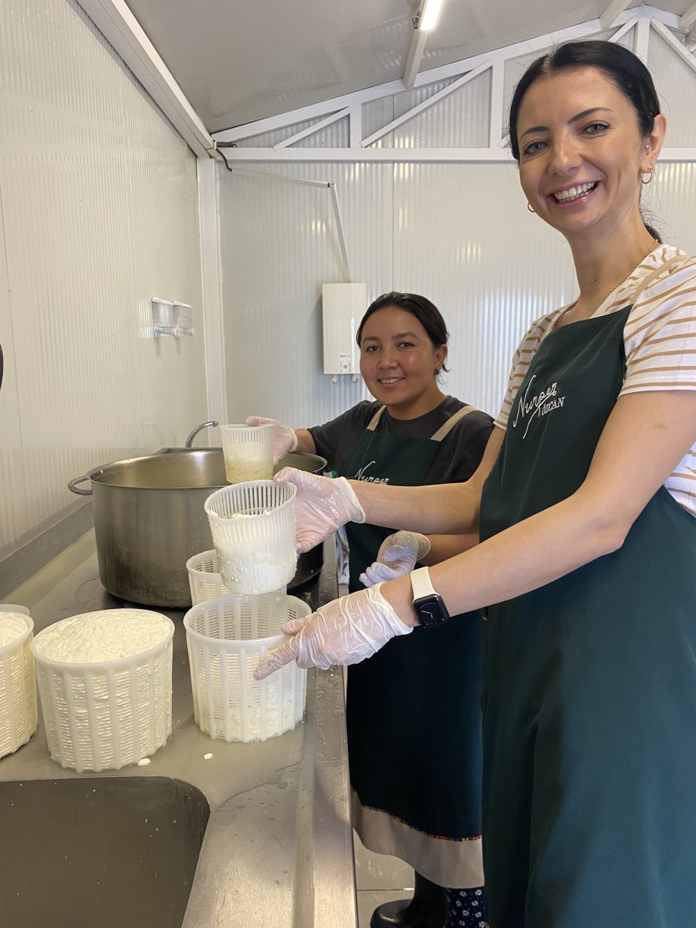 Donanımla kurmuş oldukları mandıralarında; sürk, ricotta, labne, gorcola, sepet, çerkes, isli çerkes, pecorino, ricotta, gorgonzola ,Havran kelle ve çeşnili hellim peyniri ürettik. Proseslerindeki peynirleri inceledik, eksiklerini giderdik, yorumladık.